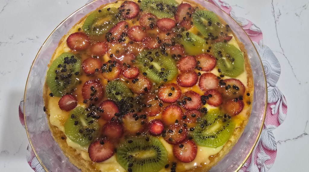 Today, I chose strawberries, kiwi, and passion fruit – but you can use any fruit you like. Everyone will love this tart! Just make sure to chill it in the fridge for a few hours before serving.